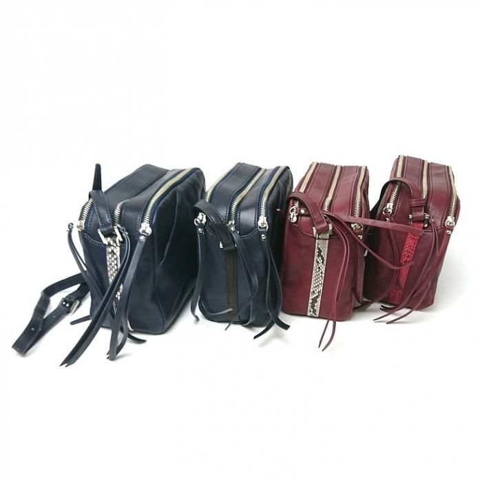 コンパクトなボディなのに機能性が高い。誰もが望む要望を実現したモデルがこのショルダーバッグです。ボディには3つの部屋があって、それぞれの部屋に分けて入れることで整理整頓がつきやすい便利でスタイリッシュなバッグです。サイドに配されたパイソンレザーのアクセントがとってもフェミニンな感じを出しています。