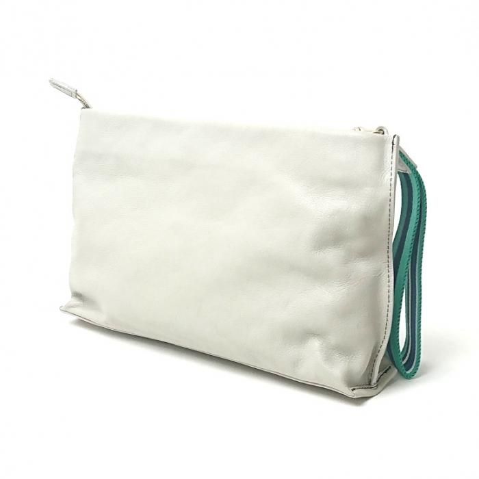 人気のクラッチバッグを、カルクルらしくフェミニンに仕上げました。取っ手のマルチストライプのテープがアクセントになって、より可愛くなっています。クラッチバッグとしても使えるし、ショルダーバッグとしても使えるマルチユースのバッグです。