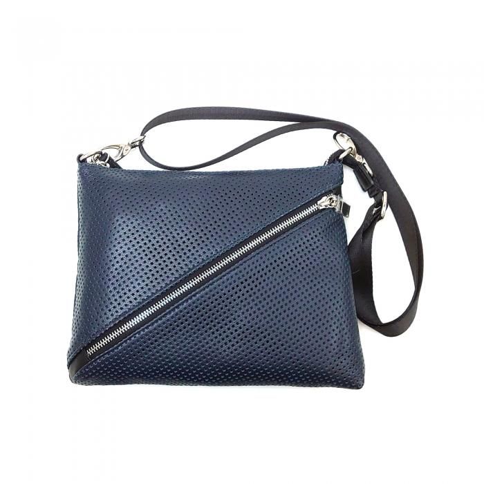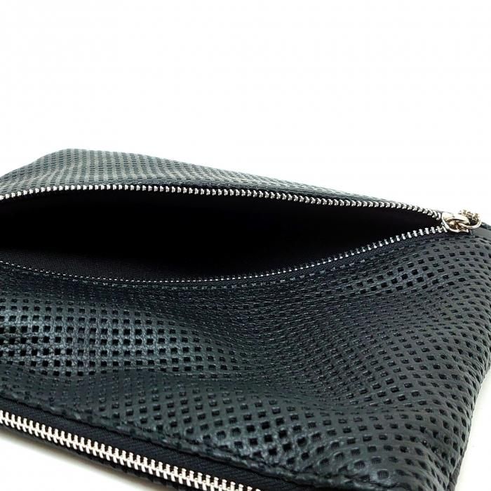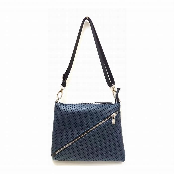 パンチング加工によりスタイリッシュなデザインと機能性、エッジの効いたレザーサコッシュ。